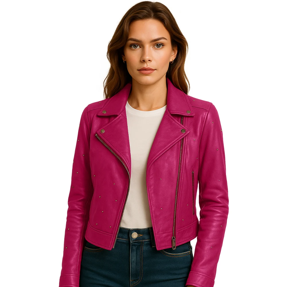 Studded Womens Pink Leather Jacket